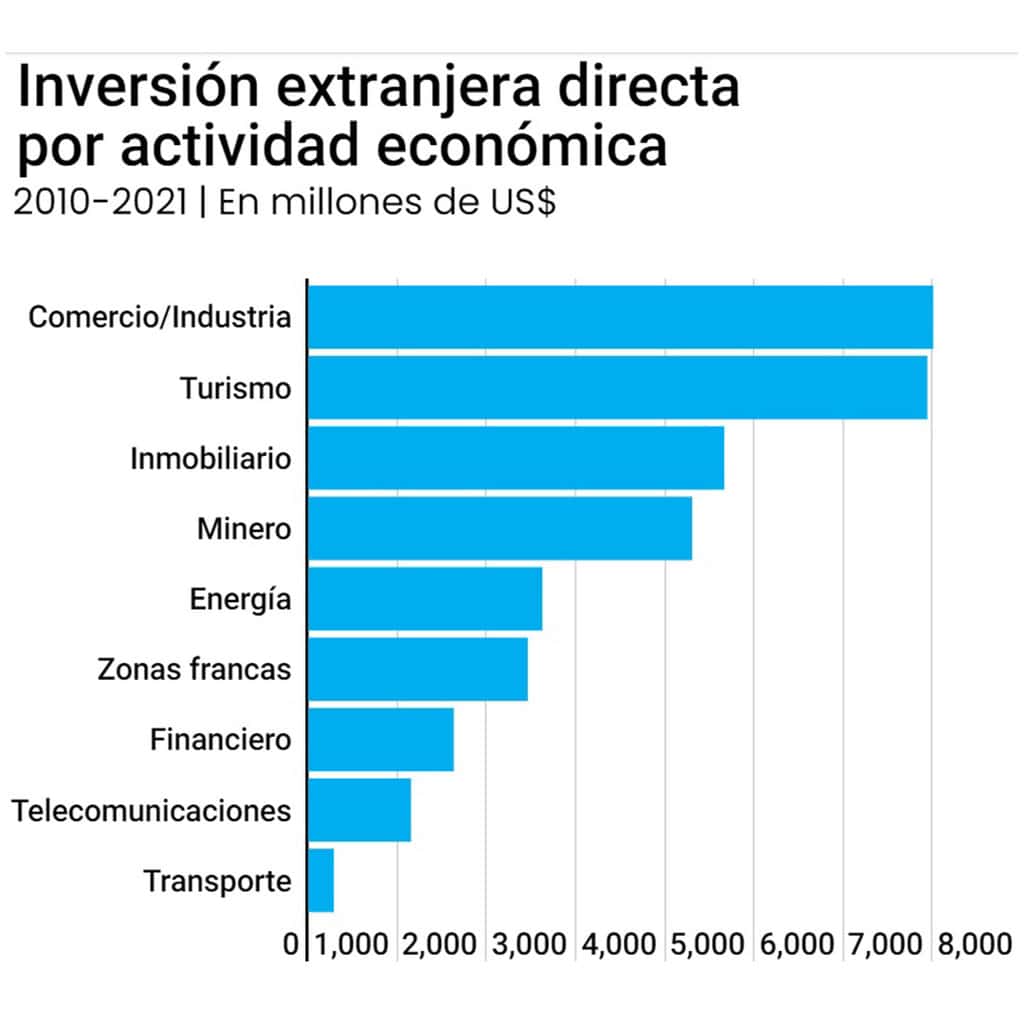 ¿República Dominicana, el país ideal para las inversiones de los extranjeros? 3 years ago Sin categoría 0 Esta semana, el gobierno anunció que República Dominicana, por primera vez en su historia, recibió la calificación ‘BB’ de Standard & Poor’s (S&P Global).El ministro de Hacienda, José Manuel (Jochi) Vicente, confió en que esto mejoraría la situación de las inversiones, lo que significaría que más empresas extranjeras se animarían a quedarse en el país, a crear empleos nativos.Para tener una idea general de qué sectores incentivan la inversión extranjera y de dónde proviene el capital, Diario Libre presenta a continuación la tendencia de la IED en el país de 2010 a 2021.Fuente: Banco Central de la República Dominicana